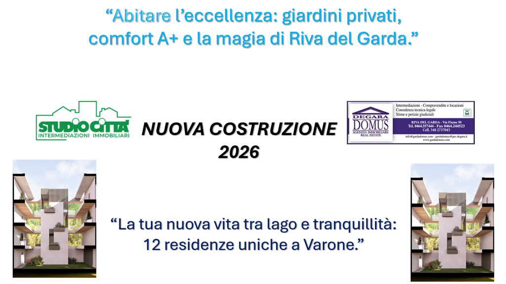 Immagina di svegliarti tra il silenzio dei giardini privati, di vivere ogni giorno il comfort della classe energetica A+, di respirare la magia senza tempo di Riva del Garda.